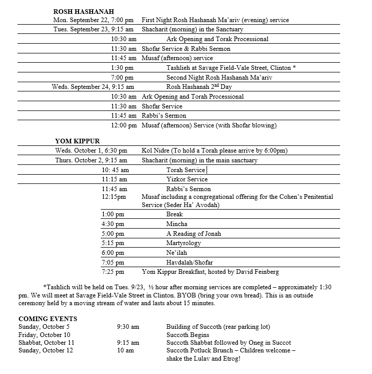 All services and events are at the Shul and on Zoom unless otherwise specified.